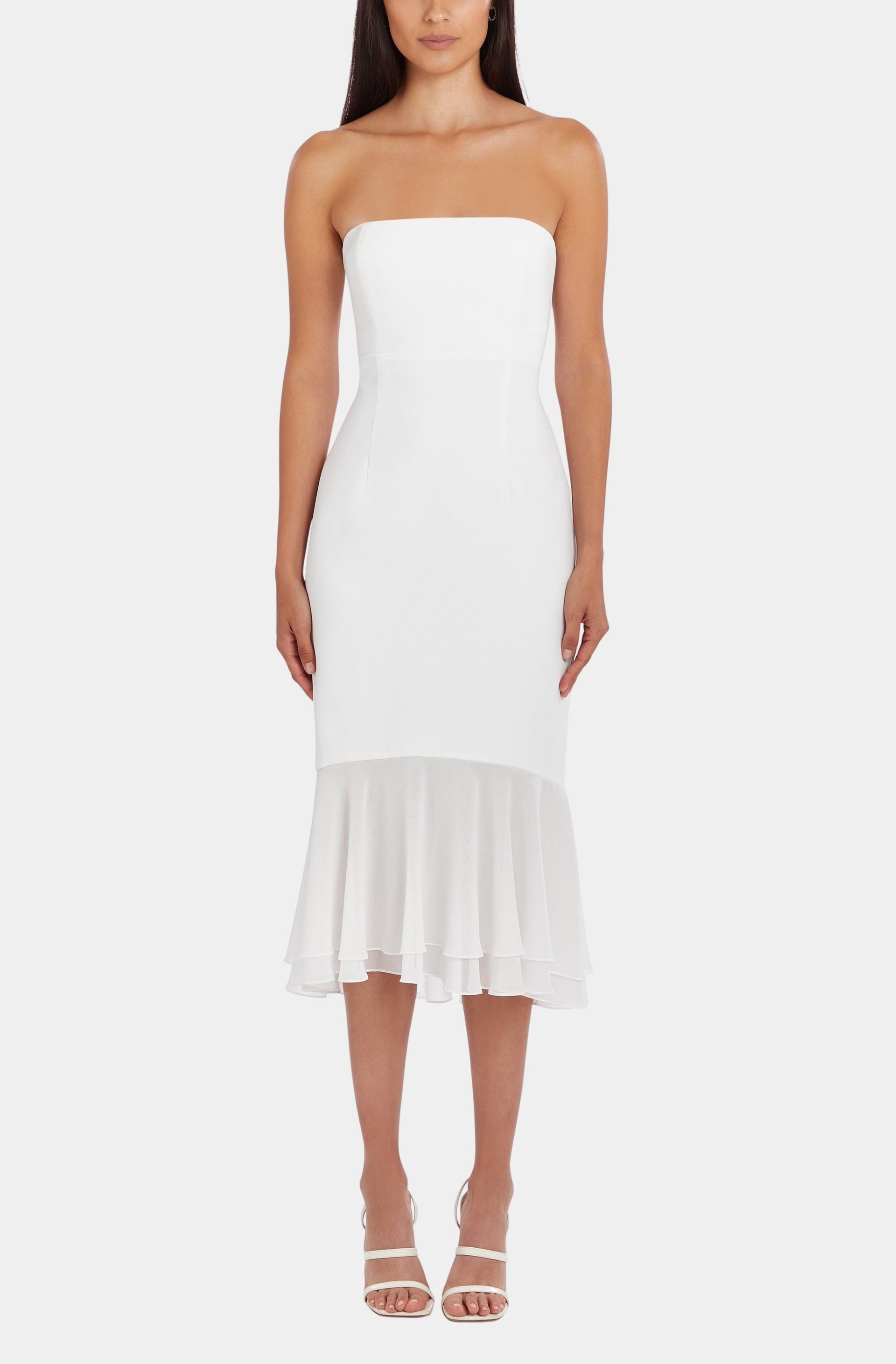 The Jackie Dress by Amanda Uprichard is a stunning strapless bodycon midi dress. Perfect for any occasion, this dress offers a sleek and sophisticated silhouette that enhances your natural curves. Ideal for making a statement, the Jackie Dress combines elegance with modern style.